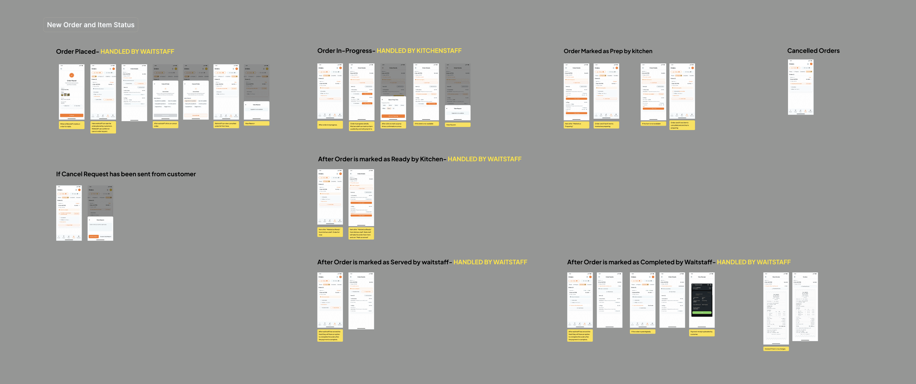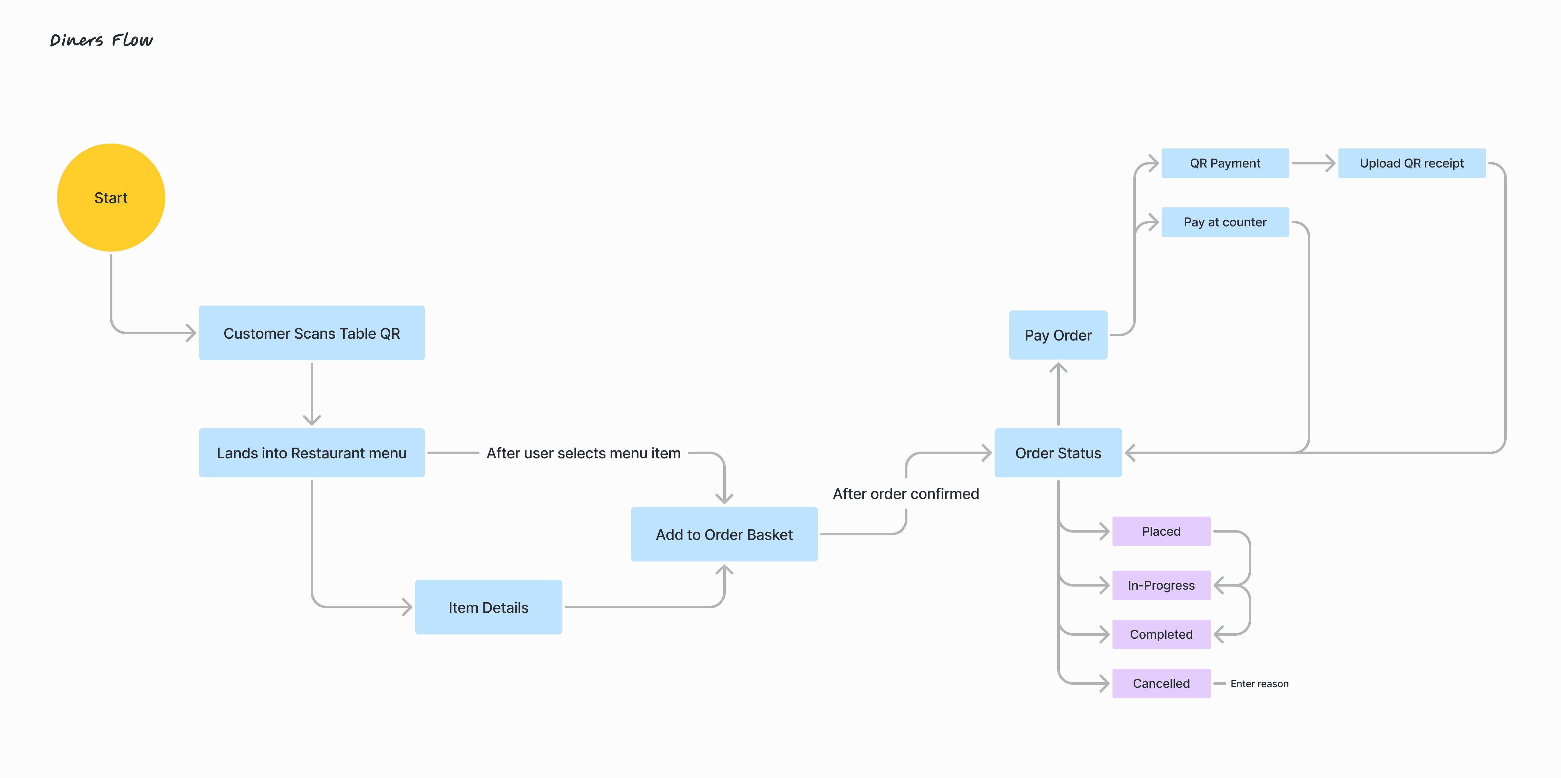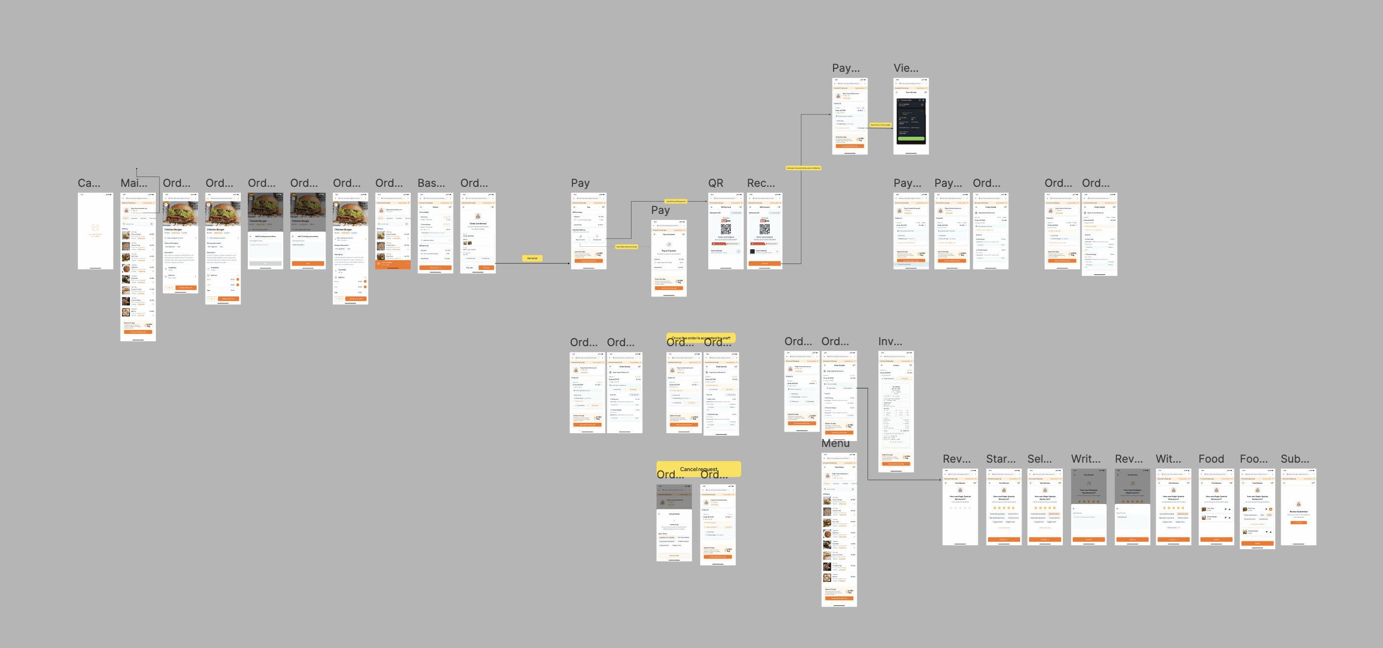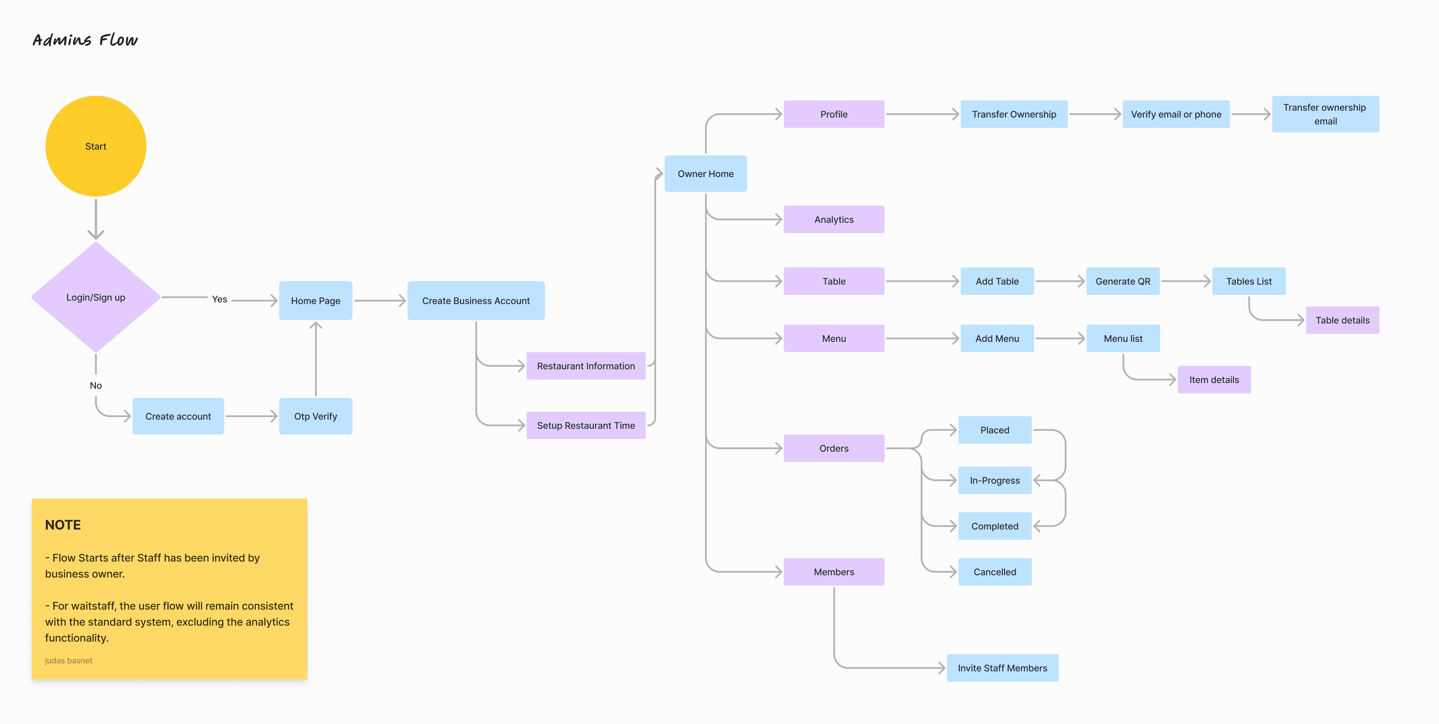 Developed detailed user flows to visualize the journey of admins managing operations and diners placing orders.