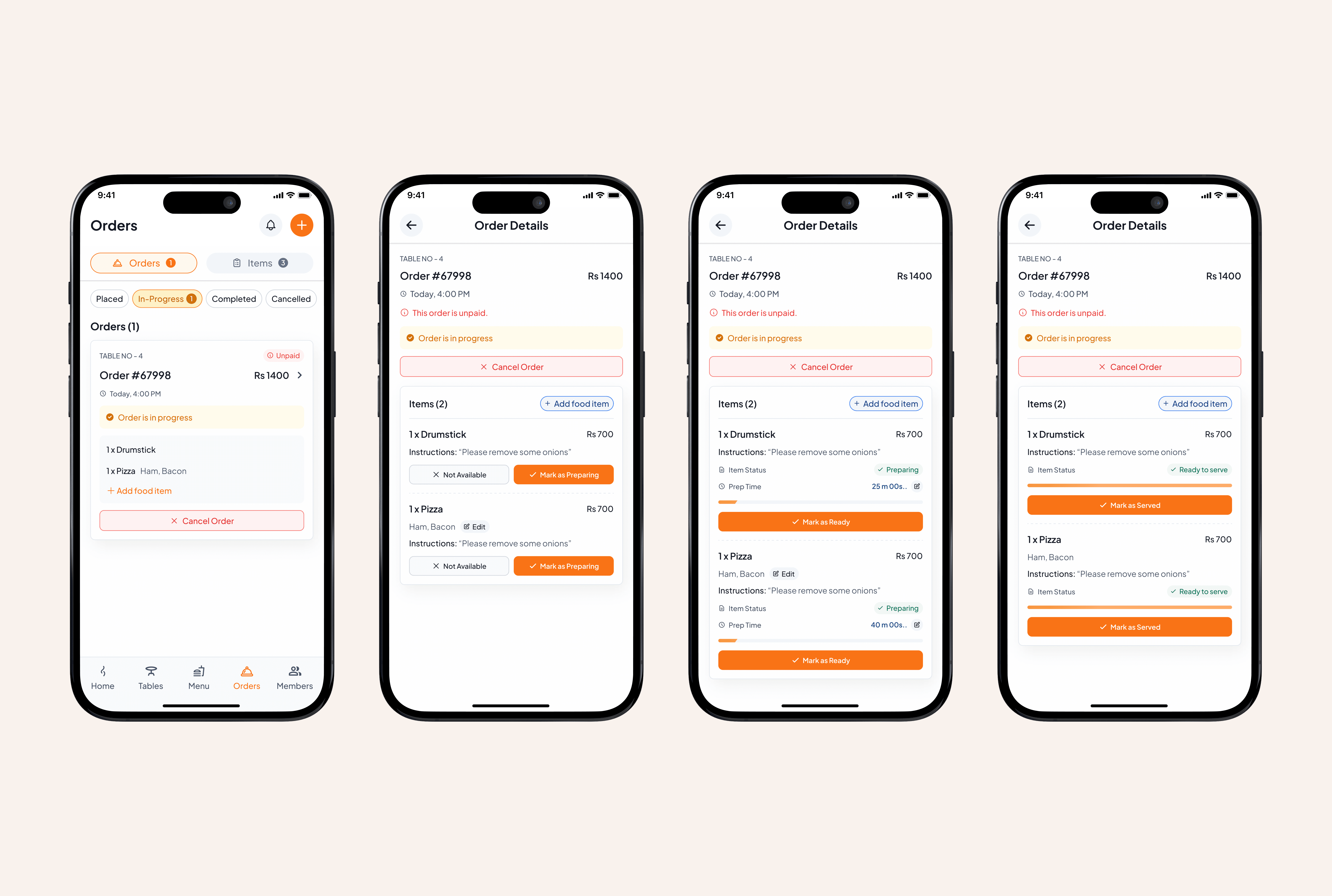 Diners can track the status of their orders in real-time, from preparation to serving, for a more informed and satisfying dining experience.