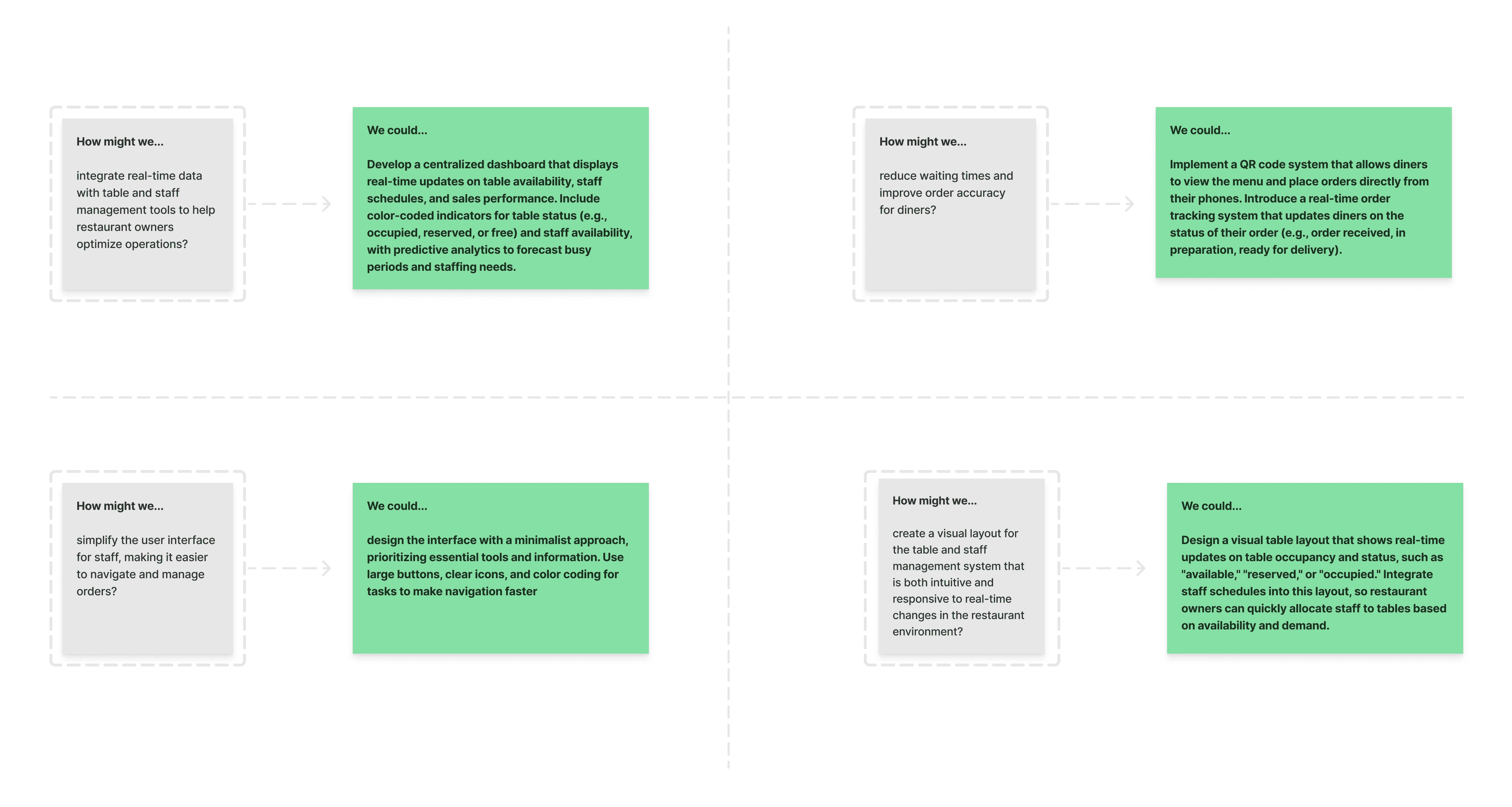 After conducting thorough market and user research, we aligned our goals and success metrics to directly address the key pain points of our users and meet market demands, ensuring that Orderlay delivers a seamless experience. By adopting the "How Might We" approach, our team generated focused questions and tailored solutions to effectively solve the challenges identified during the research phase.