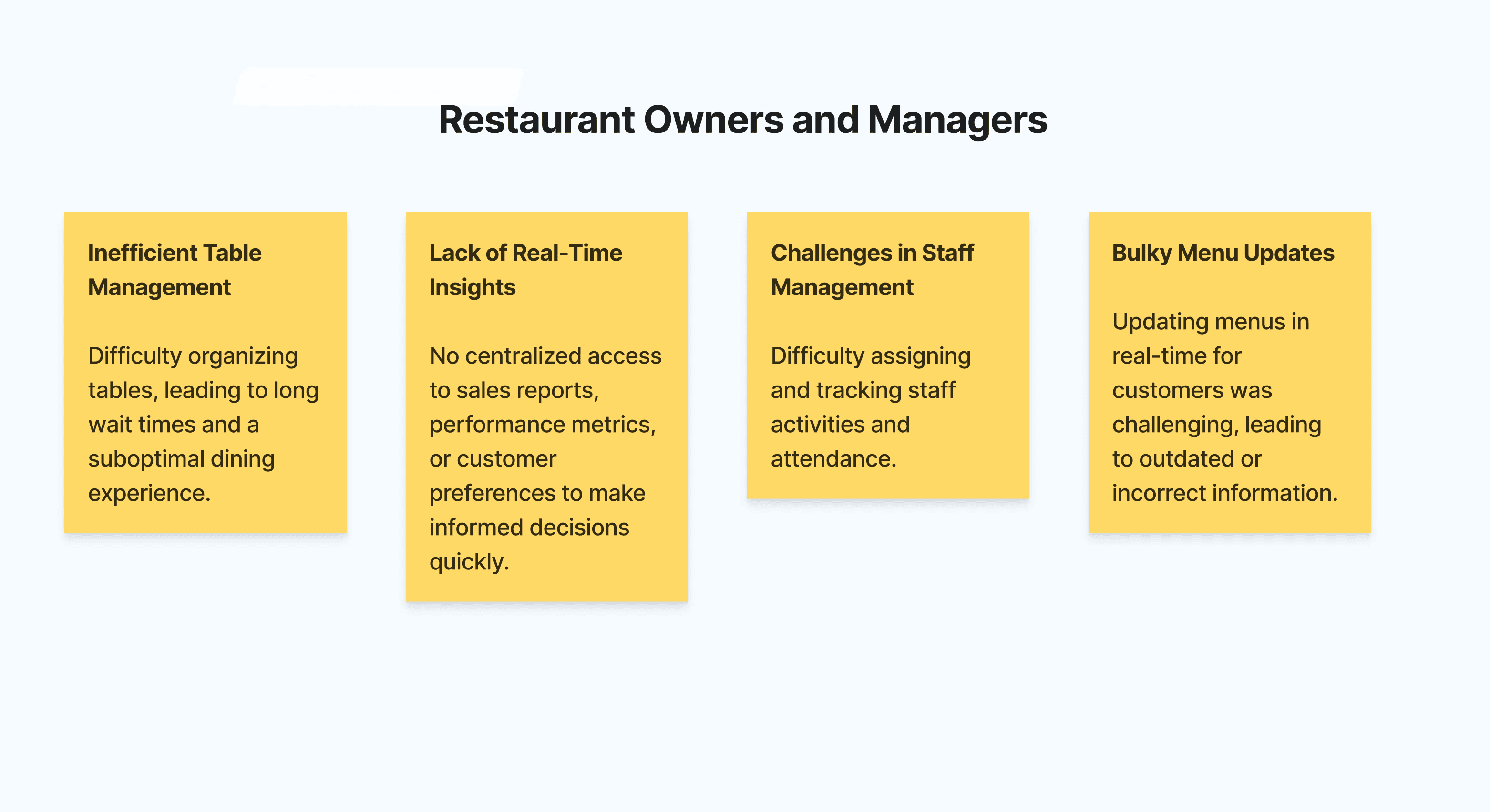 Difficulty in managing menus and staff.