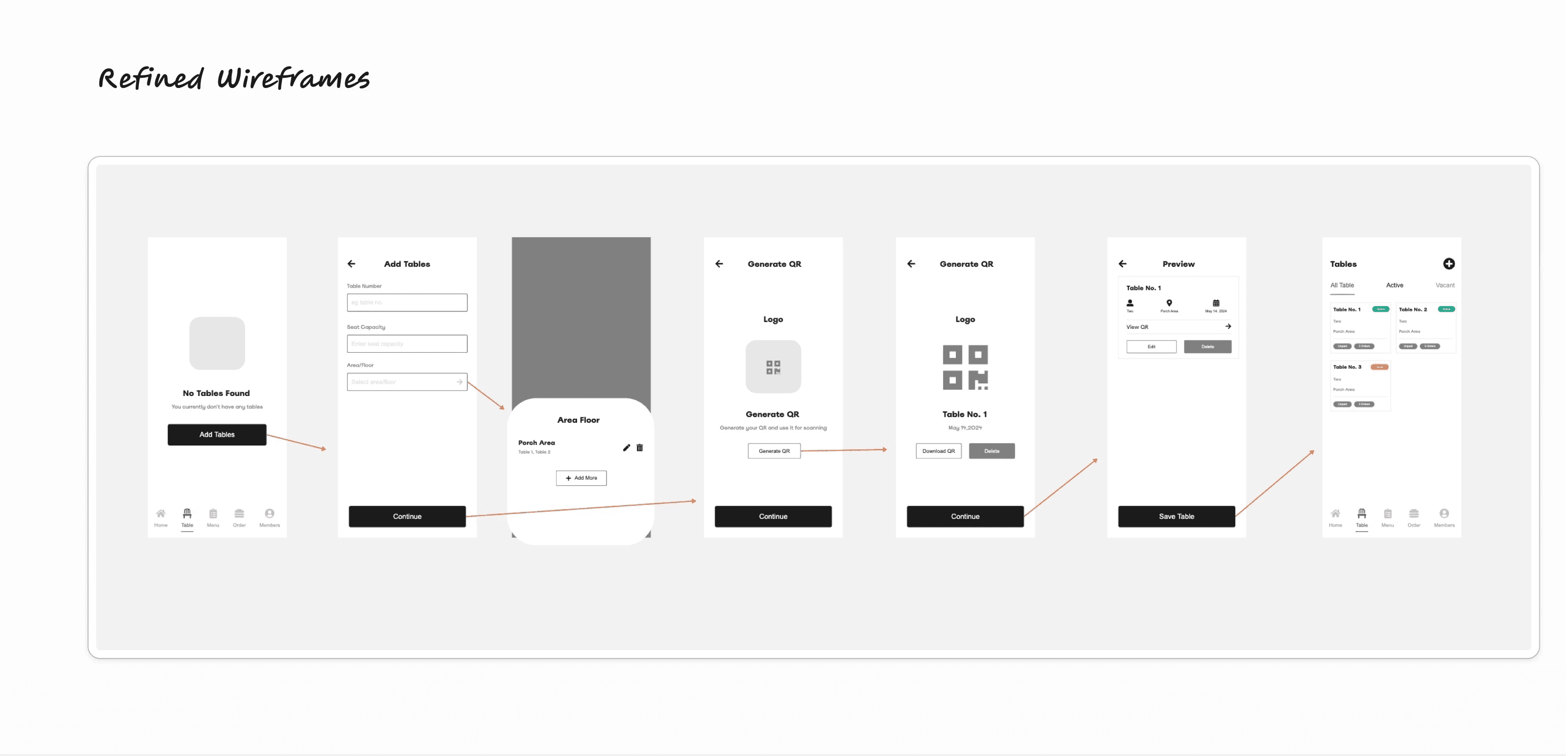 Created low-fidelity wireframes to outline key workflows, including table management, menu customization, and order tracking for admins, as well as intuitive ordering and payment flows for diners. Conducted feedback sessions with stakeholders to refine initial concepts